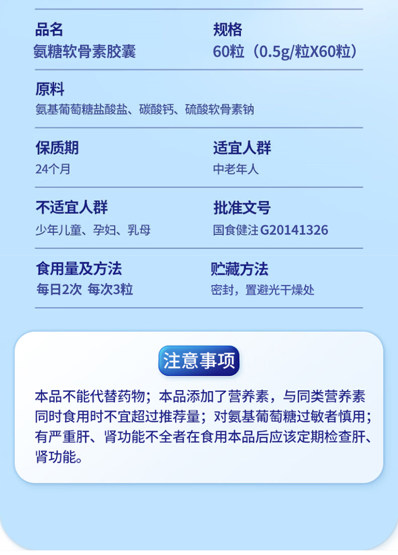 跑能氨基葡萄糖硫酸软骨素胶囊60粒